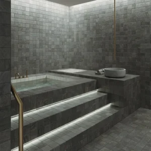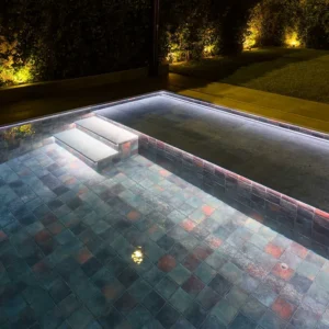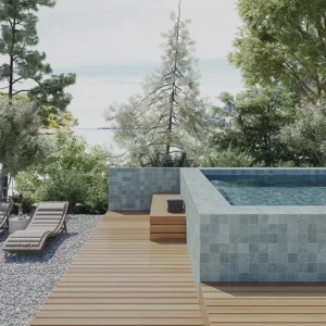 Inspiré du design de la pierre de Bali naturelle, ce type de carrelage permet de créer des bassins au rendu naturel, élégant et haut de gamme, tout en répondant aux exigences techniques spécifiques d’un usage en milieu aquatique.