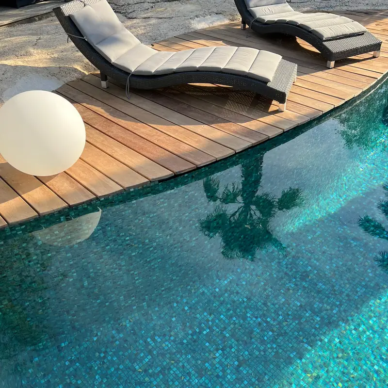 Elle peut également être utilisée dans des environnements aquatiques comme les piscines. Son rôle principal reste décoratif, en apportant texture, lumière et mouvement aux surfaces.